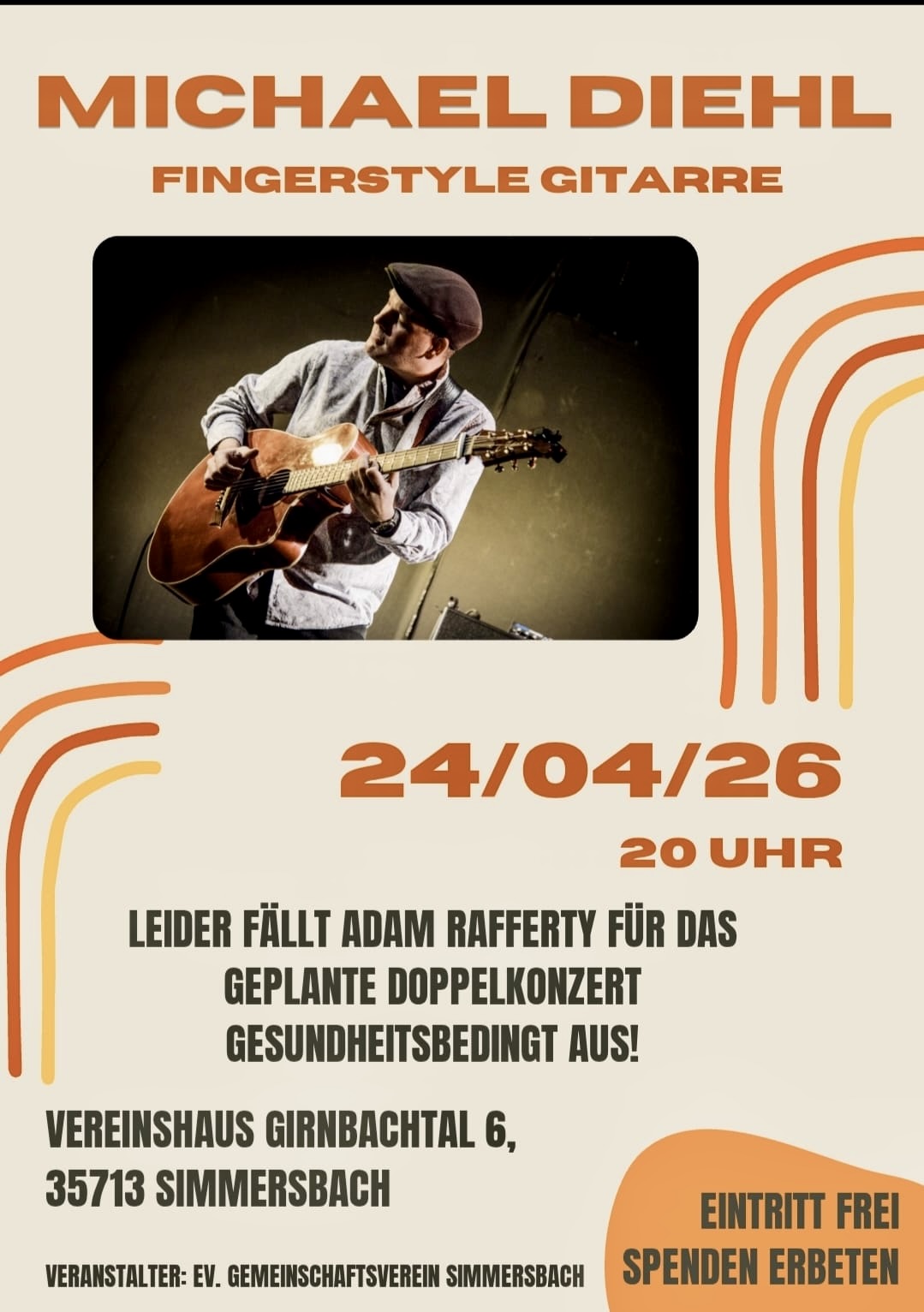 Das Konzert am 24. April findet dennoch statt und wird als Solokonzert von mir gestaltet.
